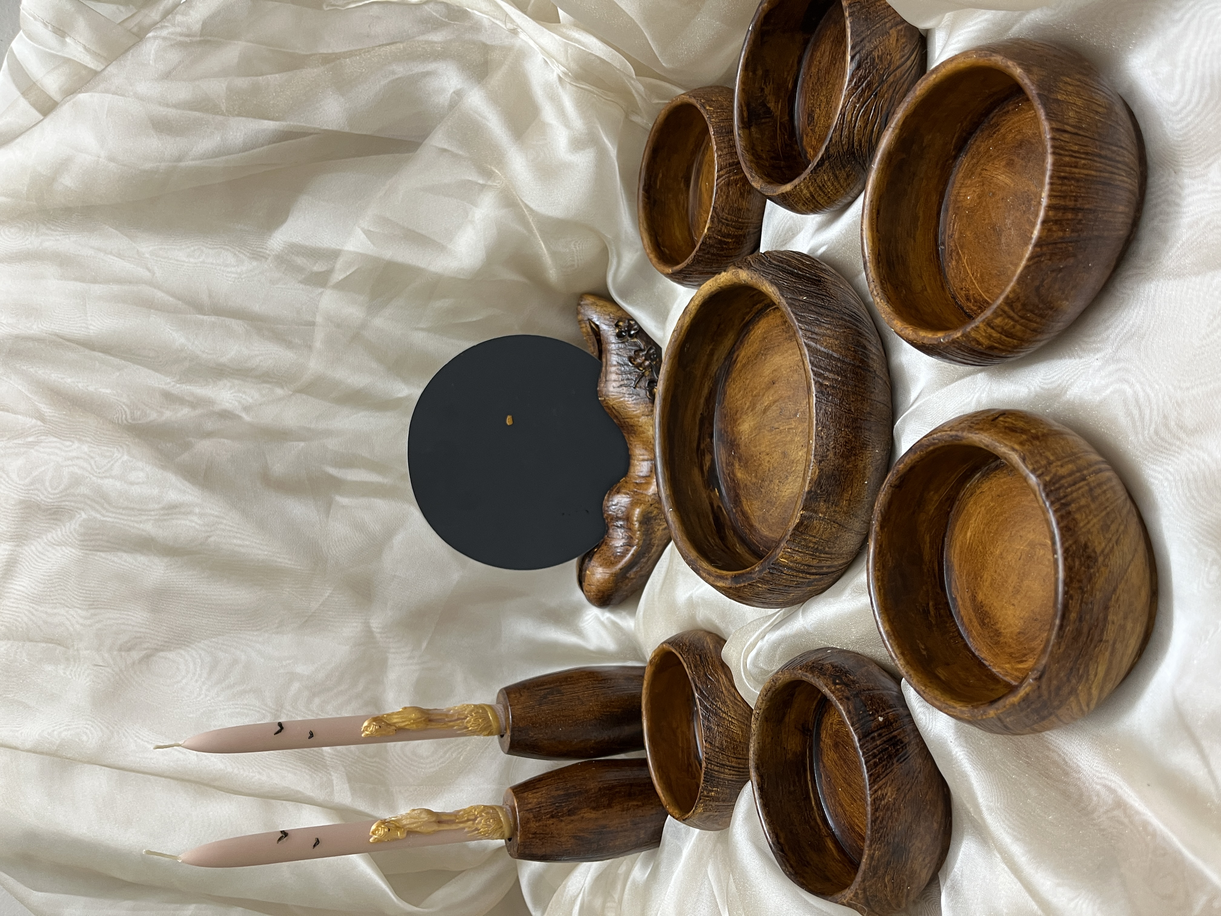هفت سین مدل طرح چوب این هفت سین زیبا از جنس پودرسنگ درست شده است. وشامل ۶پیاله و یک ظرف سبزه و جا آینه همراه با آینه و دو عدد شمعدان تقدیم حضورتون میشود.